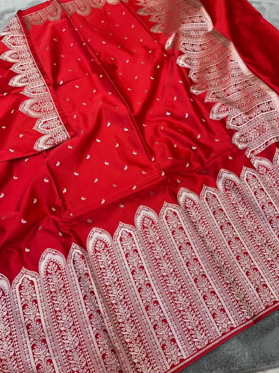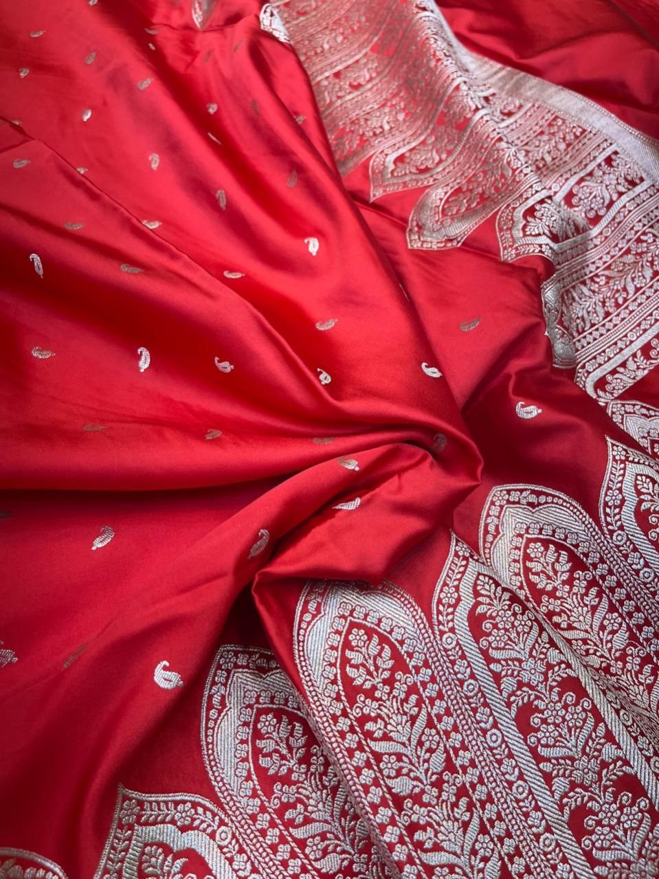 Mashru silk has a silk warp and a catalon weft and warp-faced fabric, or satin which means that the face of the cloth is predominantly silk and the reverse is catalon. It is a lightweight fabric and as soft as butter.